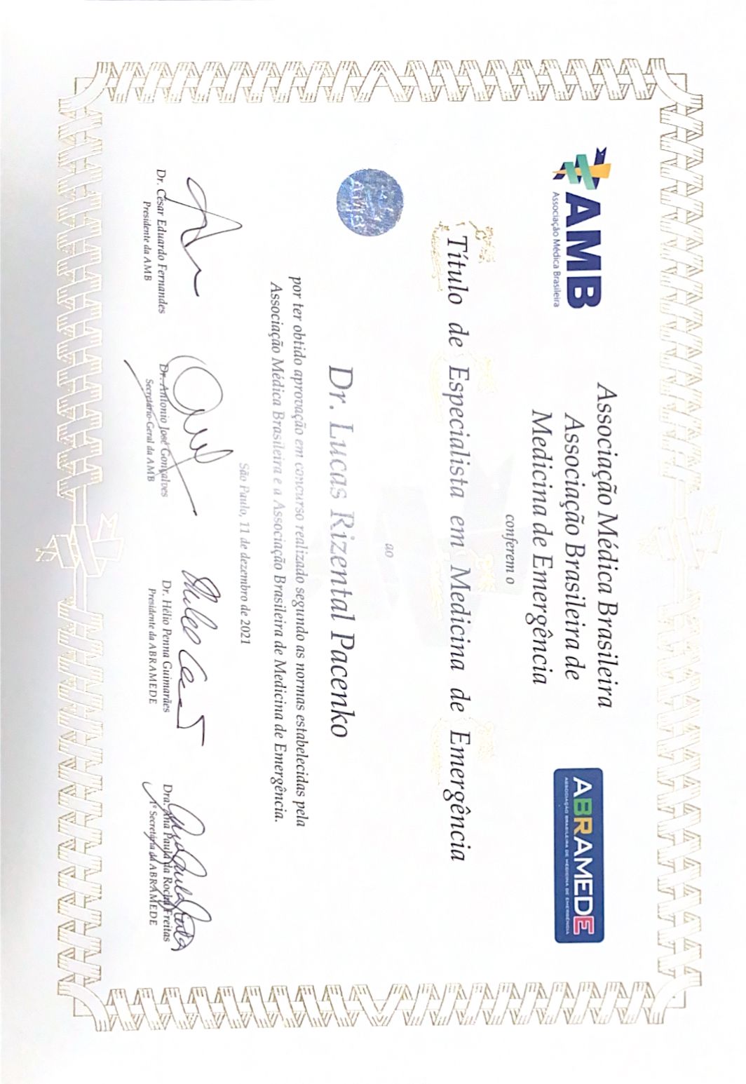Sou médico formado pela Universidade de Vassouras, no Rio de Janeiro, desde 2014. Tenho título de especialista em medicina de emergência pela Associação Médica Brasileira e pela Abramed (RQE 29675). Também tenho formação em ultrassonografia geral pela Escola de Ultrassonografia do Rio de Janeiro.